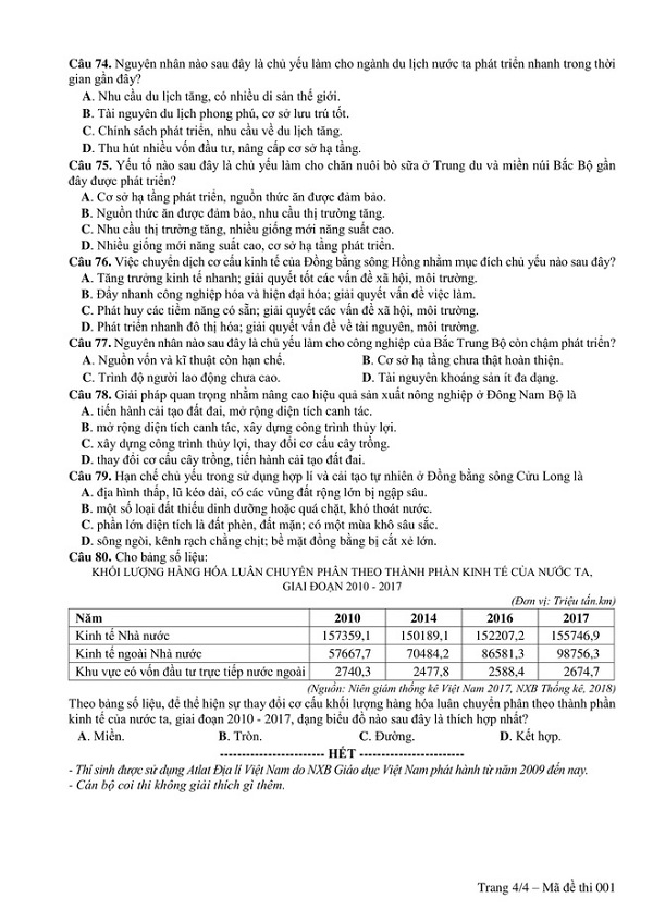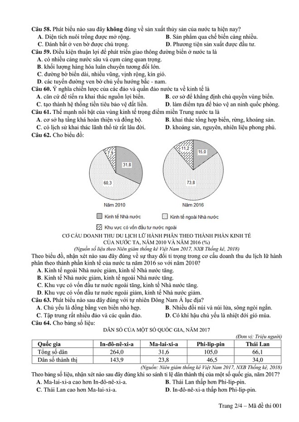 Đề thi tham khảo THPT quốc gia 2019 môn địa lý |