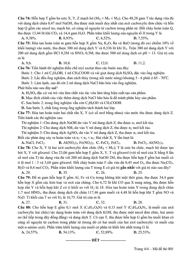 Mời quý độc giả xem đề tham khảo môn Hóa học: