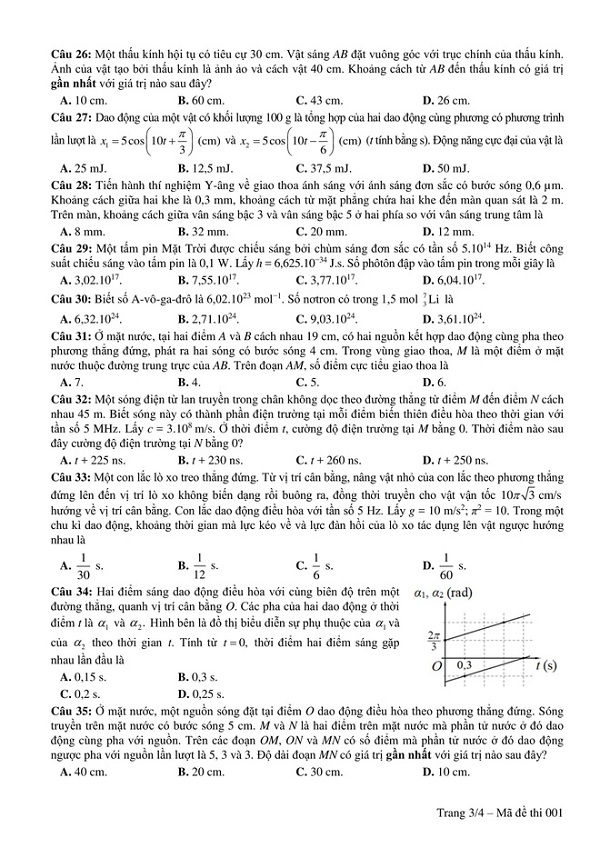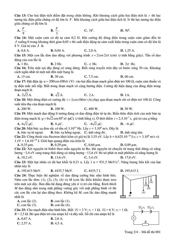 Mời quý độc giả xem đề tham khảo môn Vật lý: