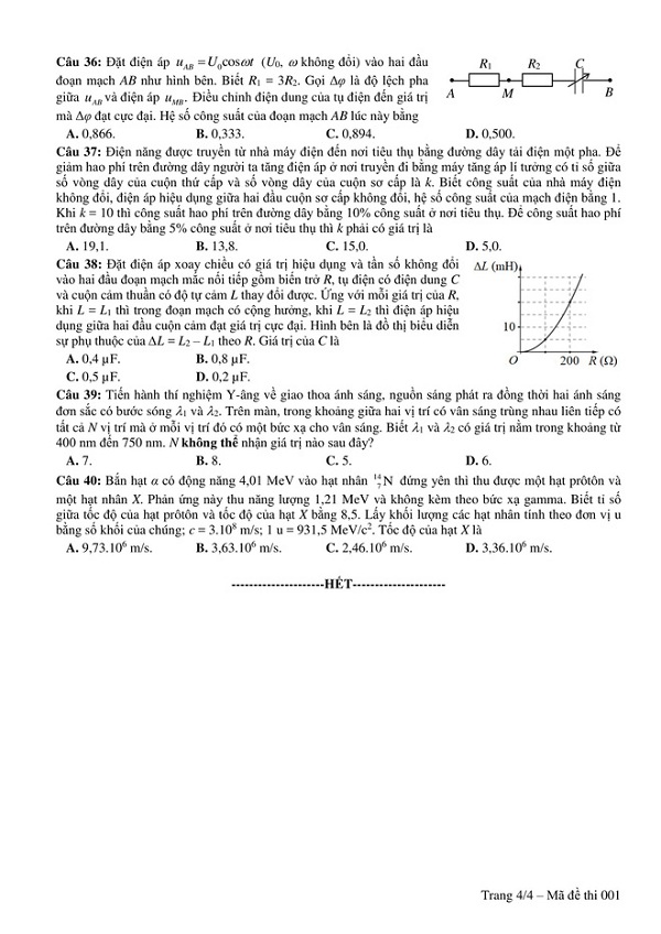 Thứ hai, các câu hỏi mang tính phân loại cao vẫn khai thác tư duy Vật lí sâu sắc như: kiến thức liên quan đến thực tiễn, ứng dụng, câu hỏi khai thác đồ thị (câu 34, câu 38 về dao động cơ và dòng điện xoay chiều), câu hỏi thí nghiệm (câu 24).
