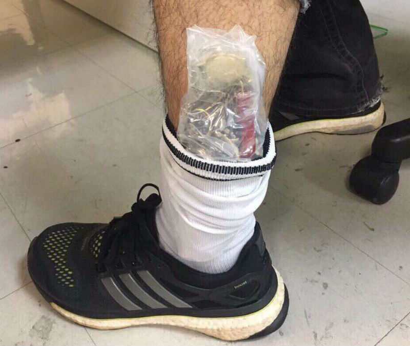 Những chiếc đồng hồ được bó quanh bắp chân của nam hành khách (Ảnh: Dân trí) |