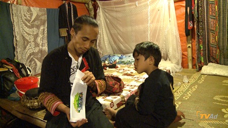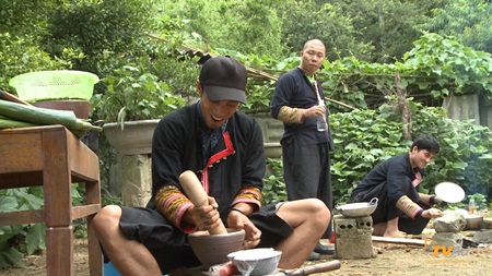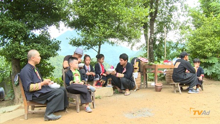 Dưới sự hướng dẫn tận tình của một thanh niên bản, cả 4 ông bố đã rất cố gắng thuộc một đoạn ngắn trong khúc hát giao duyên với phiên bản dịch ra tiếng Kinh.