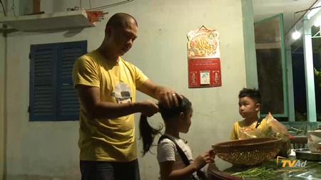 | Bố Hồng Đăng hướng dẫn Chấu sử dụng nhà vệ sinh. |