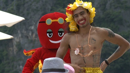 Trong lúc đó ở đảo, các bố nhận được một thuyền với các đồ quần áo vô cùng dễ thương. Để làm bất ngờ các con, các bố đã kì công hóa trang theo chủ đề biển cả.