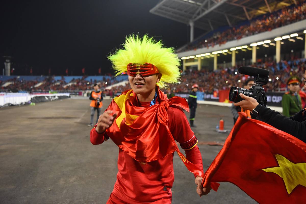 Quang Hải hóa trang mừng vô địch AFF Cup. Ảnh: VnExpress |