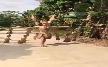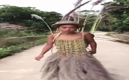 Một nhóm bạn trẻ ở Thái Lan đã sải những bước catwalk hết sức tự tin trên con đường làng, trên người là những bộ nội y không pha lê, không lông vũ nhưng vẫn vô cùng lộng lẫy bởi những vật liệu dân dã, quen thuộc như lá cây, buồng chuối, rơm rạ.