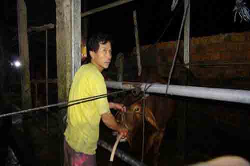 Bơm nước giếng vào bụng bò để tăng trọng lượng. |