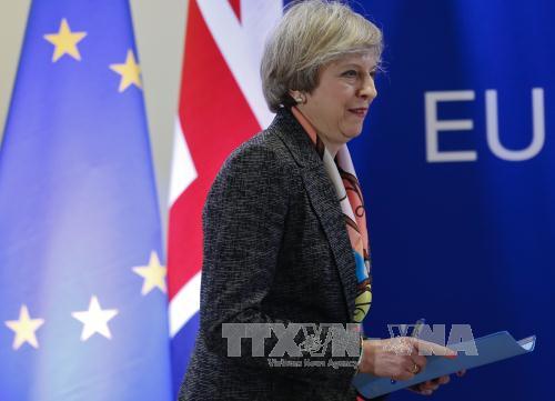 Thủ tướng Anh Theresa May tại cuộc họp báo ở Brussels, Bỉ ngày 9/3. Ảnh: TTXVN |