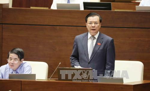 Bộ trưởng Bộ Tài Chính Đinh Tiến Dũng giải trình làm rõ các vấn đề Đại biểu Quốc hội nêu. Ảnh: Phương Hoa/TTXVN |