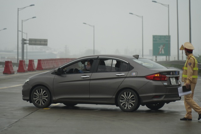 Chốt kiểm soát được lập trên cao tốc Hà Nội - Hải Phòng, rất nhiều xe từ Hà Nội đi về hướng này bị buộc quay đầu, không được vào thành phố. Ảnh: Dân trí |