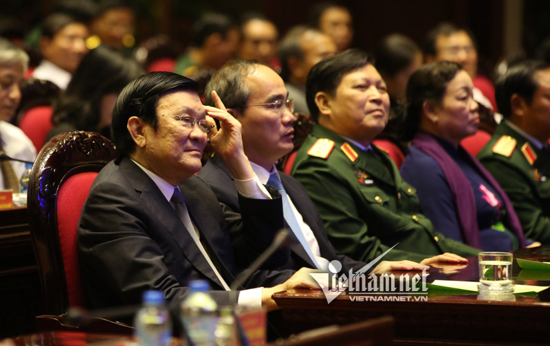 Vào phòng khánh tiết, Bộ trưởng bắt tay Chủ tịch nước Trương Tấn Sang, Phó Thủ tướng Vũ Đức Đam, nói chuyện với Phó Chủ tịch QH Tòng Thị Phóng và Trưởng Ban Dân vận TƯ Hà Thị Khiết.