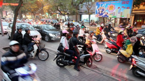 ![]() Ùn tắc giao thông tại phố Lê Hồng Phong, nhiều xe chạy lên vỉa hè dành cho người đi bộ. (Ảnh: Việt Dũng/báo Tuổi trẻ). |