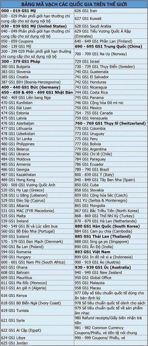 Nếu những con số nào chưa có trong danh sách nói trên thì các nước đó chưa đăng ký mã vạch nhóm GS1. Hy vọng những thông tin trên đây sẽ giúp bạn lựa chọn được sản phẩm có nguồn gốc xuất xứ an toàn nhất nhé.