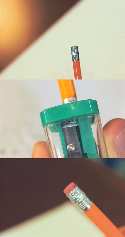 Khi cục gôm trên đầu bút chì đã mòn hết, thay vì chạy đi mua một cục gôm mới, bạn hãy đút đầu gôm vào chuốt bút chì và gọt giống như gọt bút chì vậy, từ từ phần gôm ở dưới sẽ hiện lên.