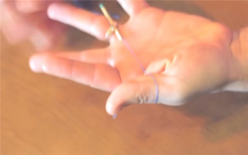 Sau đó kéo một đầu chỉ và quấn vào ngón tay cái. |