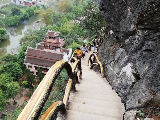 Công trình không phép 2.000 bậc thang lên xuống núi Huyền Vũ. Ảnh: Dân trí |