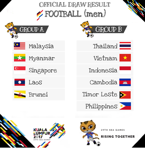 Theo lịch trình, lễ bốc thăm môn bóng đá nam SEA Games 29 đẽ được tiến hành tại khách sạn Renaissance Kuala Lumpur (Malaysia). Môn bóng đá nam có 11 đội tuyển tham dự, được chia làm 2 bảng đấu. Thái Lan và Malaysia được chọn làm hạt giống mỗi bảng.