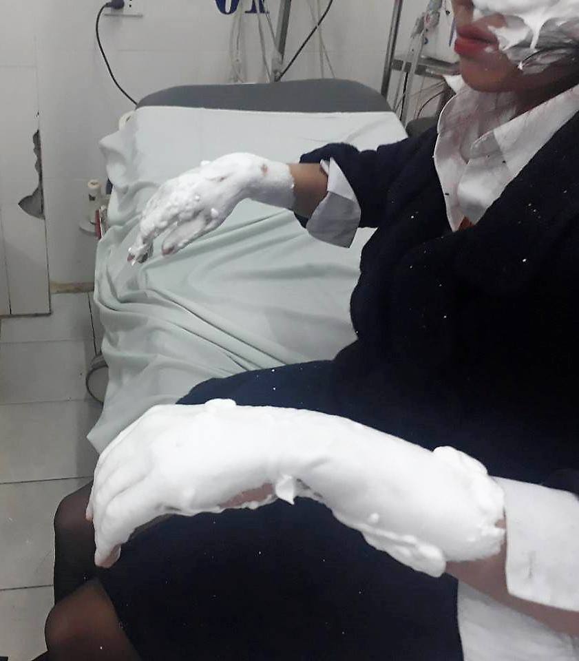 Các bác sĩ đã tiến hành sơ cấp cứu ngay lập tức cho các bệnh nhân này. Các bệnh nhân được xác định bỏng nặng ở vùng mặt, hai tay và tóc, lông mày cháy xém. Rất may mắn, thời tiết hôm nay lạnh, nên các nạn nhân đều mặc áo khoác dày nên không bị bỏng trên cơ thể.