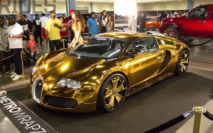 Rapper Flo Rida đã mua một chiếc Bugatti Veyron với giá 1,7 triệu USD nhưng anh thậm chí còn chi nhiều tiền hơn cho việc bọc chiếc xe bằng vàng và thay vành mới, tất cả đều là vàng 24k.