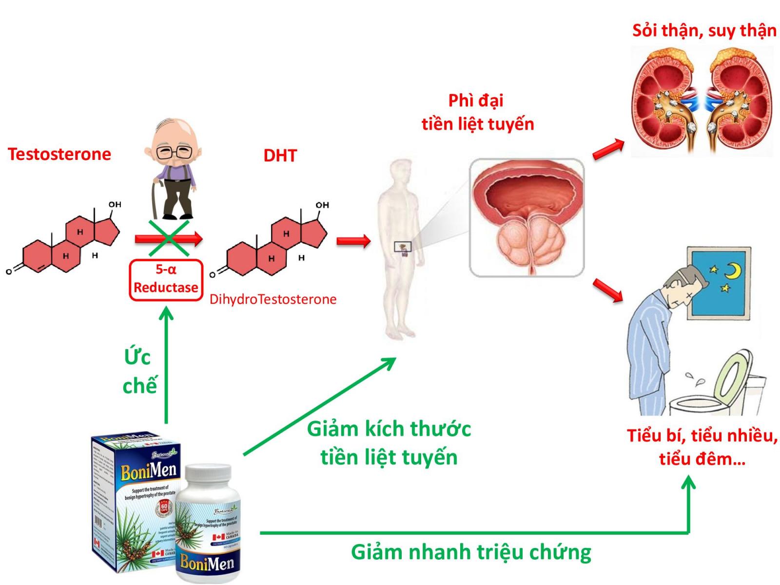 - Giúp ngăn ngừa và hạn chế sự phát triển của u xơ phì đại lành tính tuyến tiền liệt . Giúp giảm các triệu chứng của u xơ phì đại lành tính tuyến tiền liệt: Tiểu đêm, tiểu buốt, tiểu rắt, tiểu không hết, tiểu nhiều lần….
