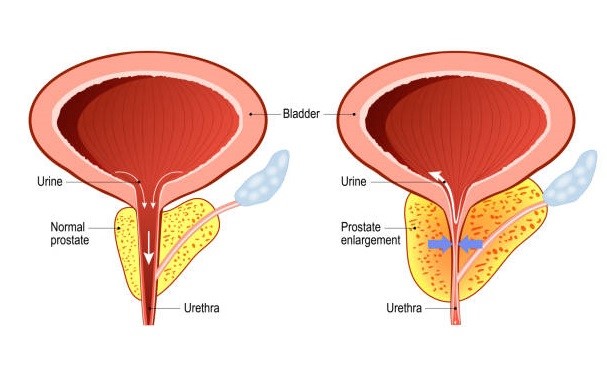 Hình ảnh tuyến tiền liệt bị phì đại (bên phải) |