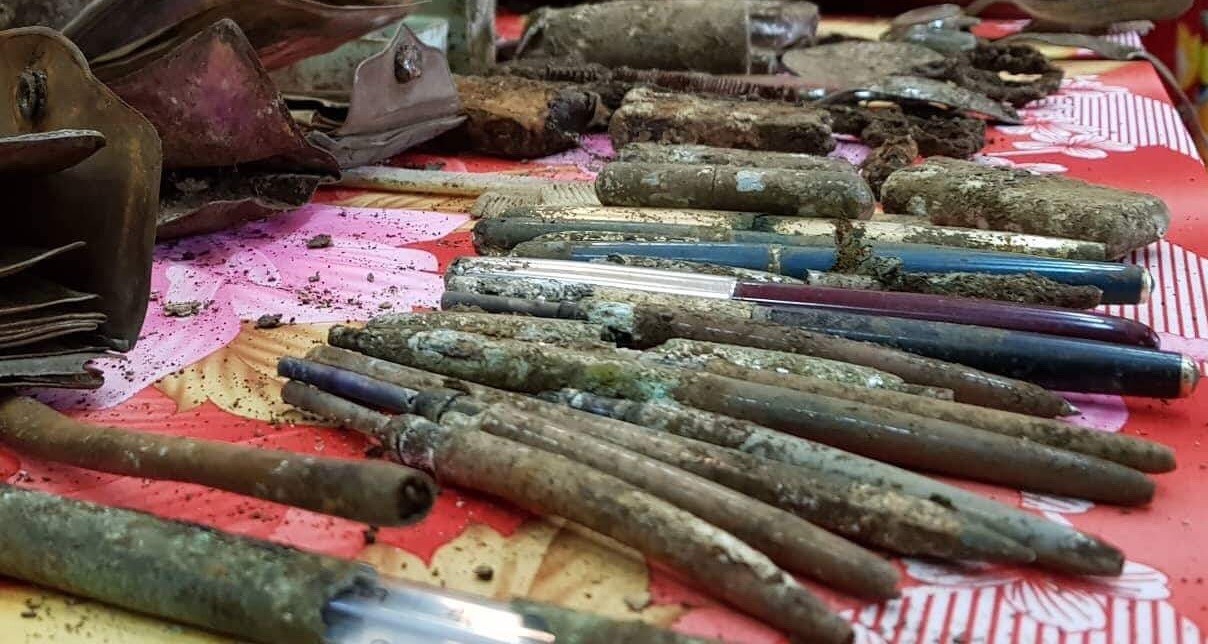 Di vật được tìm thấy ở hố chôn tập thể. Ảnh: Người Đưa Tin |