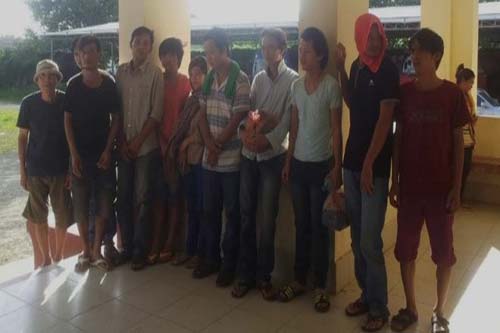 Cảnh sát Campuchia giải cứu 11 người Việt Nam bị một nhóm người Việt lừa sang tỉnh Kompong Thom lao động. (Ảnh: Lao động) |