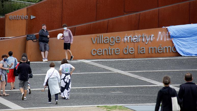 Những kẻ phá hoại vẽ nguệch ngoạc trên bức tường tưởng niệm tại một ngôi làng từng là nơi diễn ra cuộc thảm sát lớn nhất thường dân Pháp của Đức Quốc xã trong Thế chiến II.
