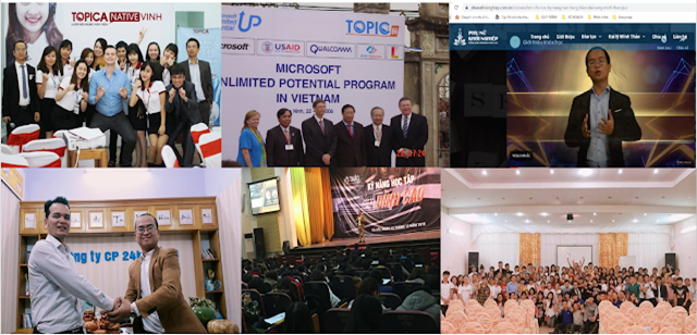 Anh Bùi Quang Dương trong các buổi chia sẻ cho các doanh nghiệp Topica, 24hgroup, Phụ nữ khởi nghiệp, ... và chia sẻ với khoa Quản trị kinh doanh - ĐH Kinh tế Quốc dân.