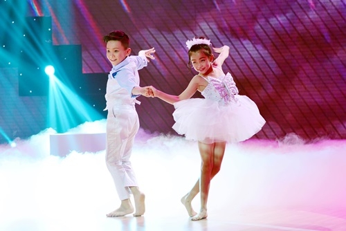 Cặp đôi Kim Thư và Bảo Anh của đội Minh Hằng-Phan Hiển khiến không ít khán giả trầm trồ về khả năng uốn dẻo trong bài múa đương đại và dance sport.