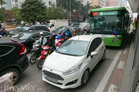 Nhiều lúc đường thoáng nhưng một số xe vẫn cố tình đi vào làn của BRT. Ảnh: Nam Trần |