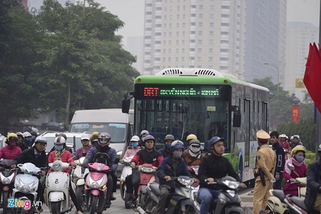 Theo thông tin trên Tri thức trực tuyến, sáng 3/1, dọc tuyến Lê Văn Lương vào nội thành, nhiều cảnh sát, thanh tra giao thông được điều phối phân luồng. Tuy nhiên, hàng trăm ôtô, xe máy vẫn đè lên làn riêng của buýt nhanh BRT.