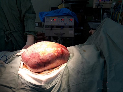 Khi mổ ra, các bác sĩ phải ngạc nhiên về kích thước khổng lồ của khối u, chiếm toàn bộ diện tích khoang bụng cả bệnh nhân, chèn ép hết cả các cơ quan nội tạng khác. Thật không hiểu sao bệnh nhân có thể sống cùng khối u lớn đó lâu như vậy.