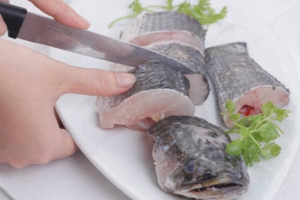 - Cá làm sạch, lấy hết máu dư còn dính ở xương sống. Sau đấy, bạn cho vào chậu chút muối, gừng đập dập, hành lá và hạt tiêu rồi trộn đều.