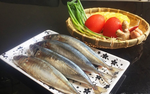 - Rửa sạch cá nục, mổ bụng bỏ đi ruột cá. Dùng một muỗng canh muối chà sát trong ngoài để khử mùi tanh của cá. Sau đó, rửa cá lại với nước sạch 2 lần, rồi để ráo.