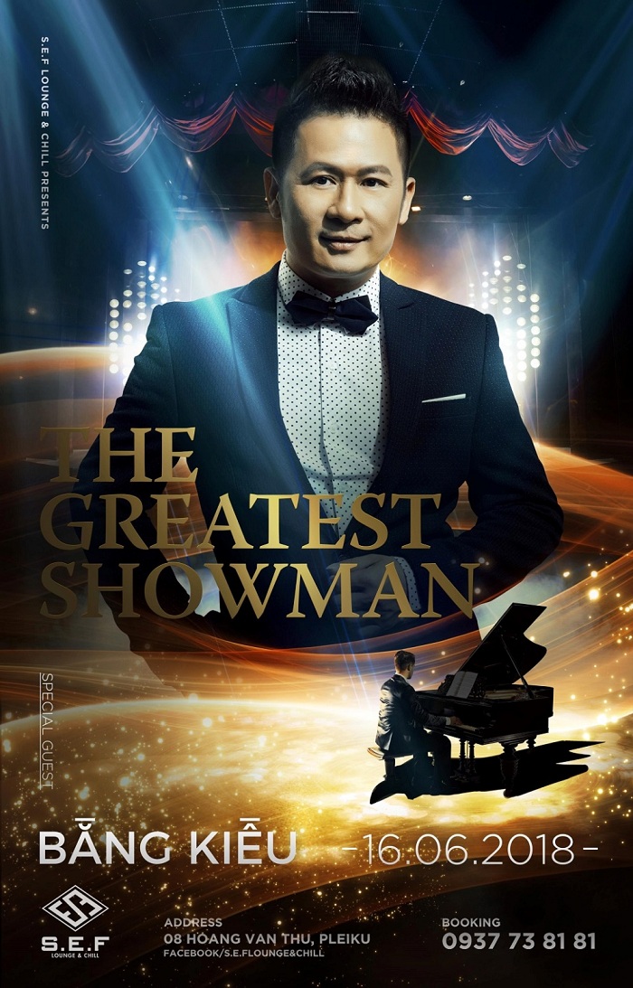 | Liveshow chủ đề “SEF x Paris By Night: The Greatest Showman - Bằng Kiều” sẽ diễn ra tại SEF Lounge (08 Hoàng Văn Thụ, TP. Pleiku) vào tối ngày 16/6. |