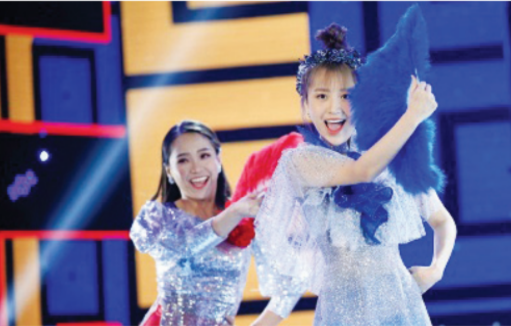 Ca sĩ Han Sara biểu diễn trên sân khấu đón xuân. |