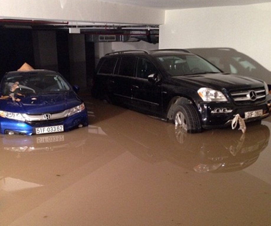 Trước đó, cơn mưa lớn vào chiều tối 15/9 đã làm nước tràn vào tầng hầm chung cư Green Hills khiến cả trăm xe máy cùng nhiều ô tô bị ngâm trong biển nước.