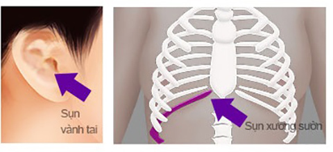 Sử dụng sụn vành tại để nâng mũi: Sụn vành tai là loại sụn được sử dụng phổ biến nhất, được lấy ở vành tai. Với đường mổ nhỏ từ 3 - 4mm, bác sĩ sẽ lấy sụn để sử sụng trong quá trình bọc đầu mũi. Do có độ mềm vừa phải nên rất an toàn cho khách hàng.