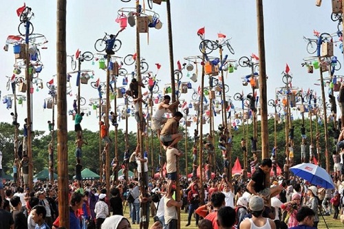 Ngày Quốc khánh ở Indonesia xoay quanh trò chơi panjat pinang. Trò chơi gồm những thân cây cao chót vót, được treo quà và dầu trên đỉnh.