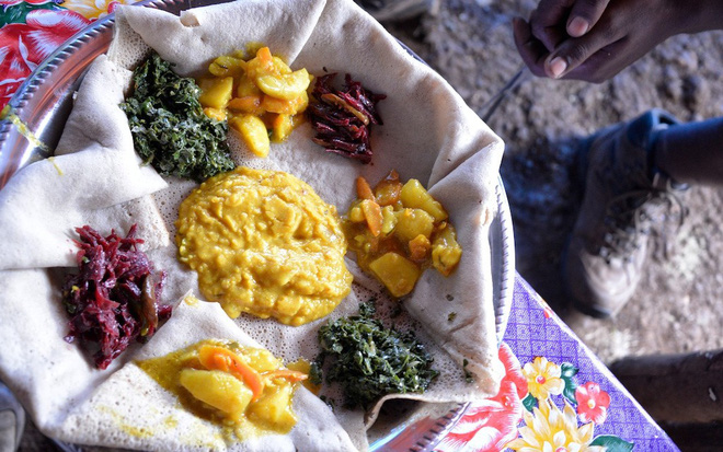 Ở Ethiopia, lễ Giáng sinh được tổ chức vào ngày 7/1 hàng năm để tưởng niệm sự ra đời của chúa Giêsu. Trước khi ngày lễ diễn ra, người Ethiopia sẽ trải qua 40 ngày ăn chay - chỉ ăn duy nhất một bữa ăn thuần chay một ngày. Sau bốn mươi ngày, khi tham dự các buổi lễ của nhà thờ xong, người Ethiopia sẽ cùng nhau thưởng thức bữa tiệc Doro Wat on Injera - một món hầm gà cay được yêu thích tại đất nước này. Món ăn được phục vụ theo phong cách gia đình, với bánh injera, bánh mì dẹt xốp cùng với các loại nước sốt.