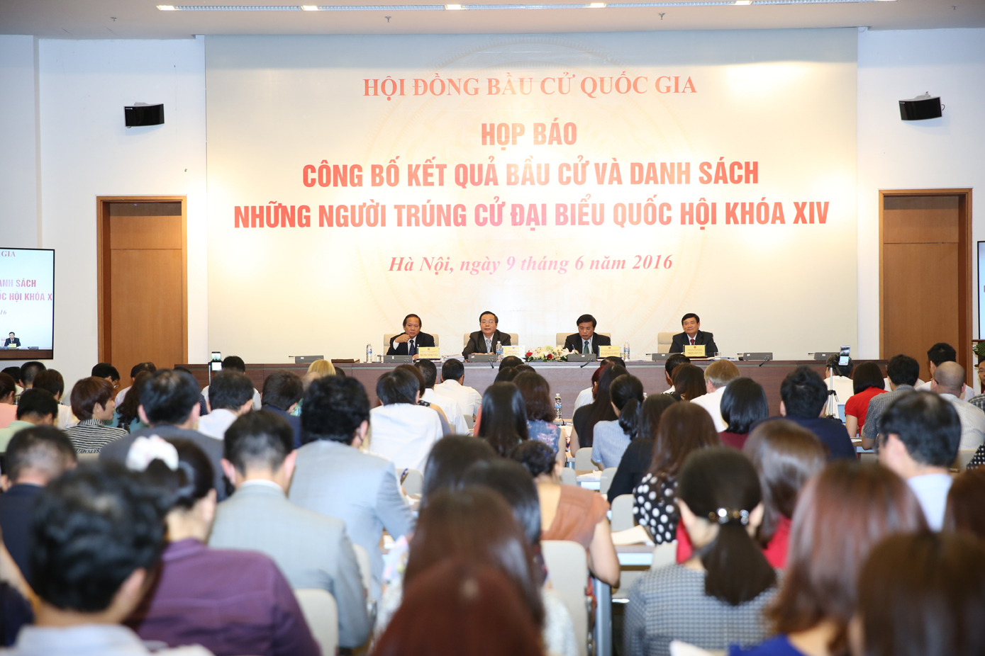Chiều 9/6, tại Hà Nội, Hội đồng Bầu cử Quốc gia họp báo công bố kết quả bầu cử đại biểu Quốc hội khóa XIV nhiệm kỳ 2016-2021 dưới sự chủ trì của Phó Chủ tịch Quốc hội Phùng Quốc Hiển, Tổng Thư ký Quốc hội kiêm Chánh Văn phòng Hội đồng Bầu cử Quốc gia Nguyễn Hạnh Phúc, Trưởng Ban Công tác đại biểu Quốc hội Trần Văn Túy, Bộ trưởng Bộ Thông tin và Truyền thông Trương Minh Tuấn.