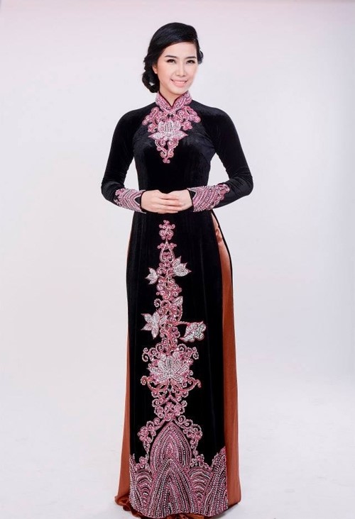 Chất liệu nhung, gấm vừa co dãn tốt vừa sang trọng rất phù hợp với độ tuổi của các mẹ. Bên cạnh đó áo dài ăn hỏi thiết kế từ chất liệu nhung, gấm giúp các mẹ dễ dàng che đi khuyết điểm cơ thể của mình. Thêm vào đó phần thân, tà áo được đính thêm chút họa tiết hình rồng phượng hay hoa văn cầu kỳ sẽ tôn lên sự quý phái, thanh lịch cho các mẹ.