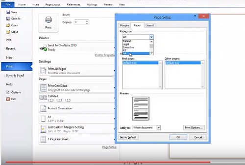 Bước 3: Clich vào Page Setup > Paper và chọn khổ A4. Bạn cũng có thể thiết lập khung kích thước này vào máy để mặc định sau đó ấn OK. Ngoài ra, bạn cũng có thể chọn nhiều khổ giấy khác nhau tùy theo nhu cầu sử dụng.