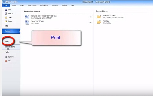 Bước 2: Click vào “file” sau đó chọn “Print”. (Như hình)