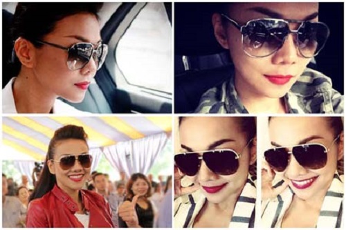 Với khuôn mặt trái tim Thanh Hằng cũng lựa chọn cho mình mẫu kính phi công sành điệu |