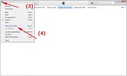 Bên trái trên cùng của iTunes có hình menu và click vào “Thêm vào thư viện” hoặc có thể nhấn phím Ctrl + O cũng được nhé!