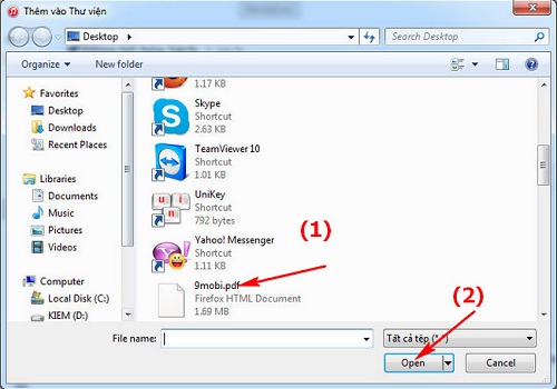 Click vào “Tài liệu PDF của tôi” có nghĩa là các file PDF được lưu giữ trong máy tính của bạn. Nếu muốn tải lên file nào thì bạn hãy kích vào file đó.