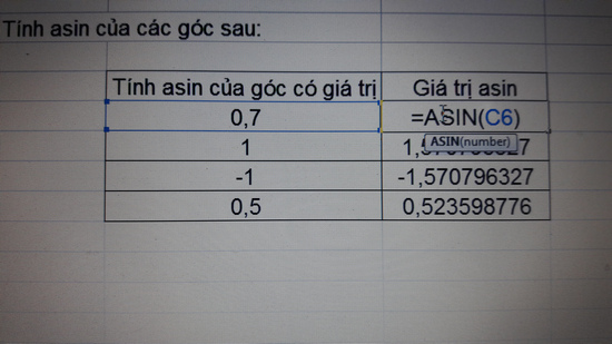 | Cách dùng hàm ASIN trong excel |