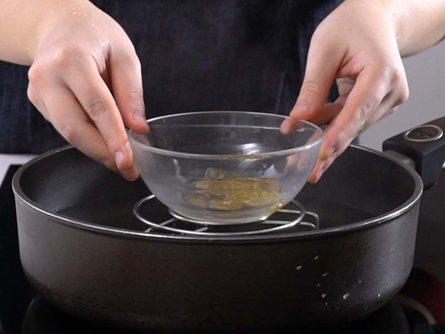 Cho chúng vào hấp sôi cho gelatin tan chảy ra rồi để qua một bên.